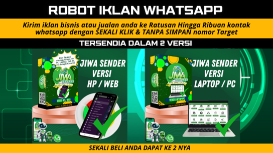 Bagaimana pun, mengirimkan pesan massal ke nomor asing bukanlah aktivitas yang sepenuhnya dizinkan oleh WhatsApp. Seluruh resiko yang timbul selama penggunaan merupakan tanggung jawab masing-masing pengguna, maka gunakan dengan bijak Tools JIWA SENDER ini sebagai alat bantu anda dalam mempromosikan bisnis atau jualan anda.